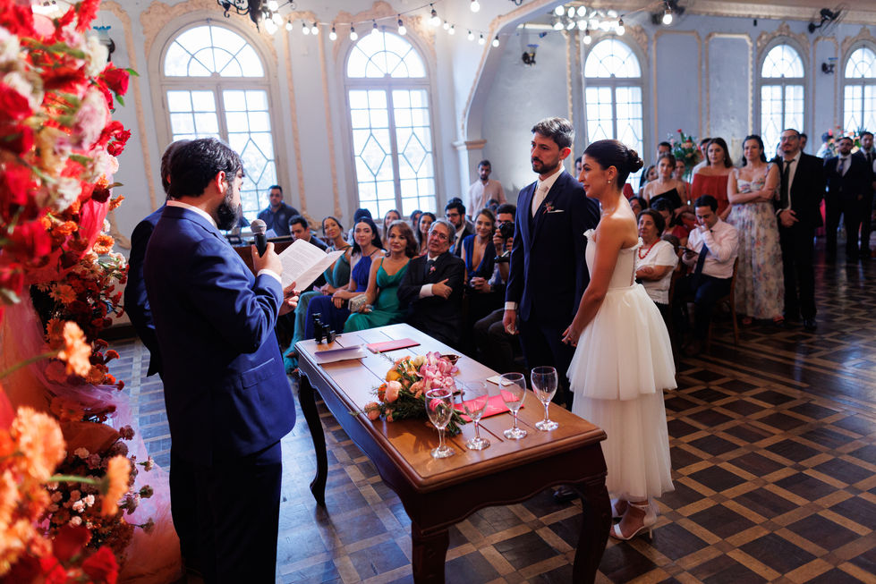 Identidade visual, cartas dos votos dos noivos, celebrantes e pais, cartazes na entrada.